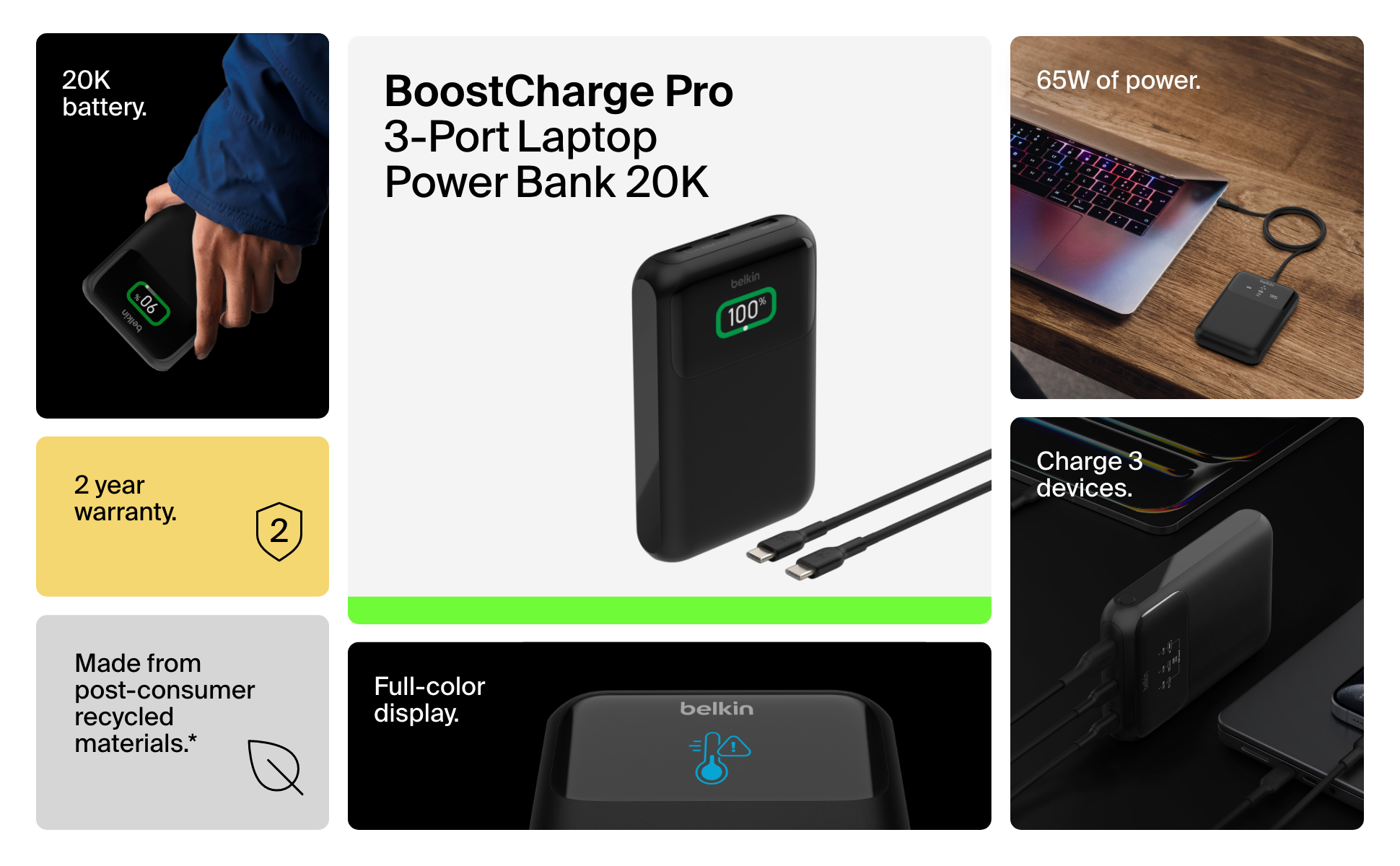 Charge your laptop, MacBook and other devices quickly and safely with this power bank with a 20K§ battery capacity.