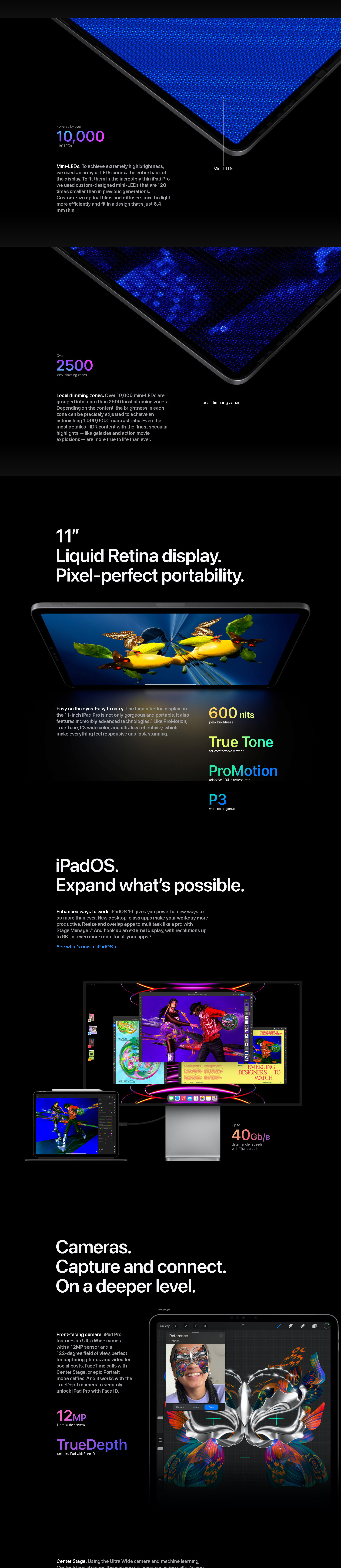 1The display has rounded corners. When measured diagonally as a rectangle, the iPad Pro 12.9-inch screen is 12.9 inches. Actual viewable area is less.