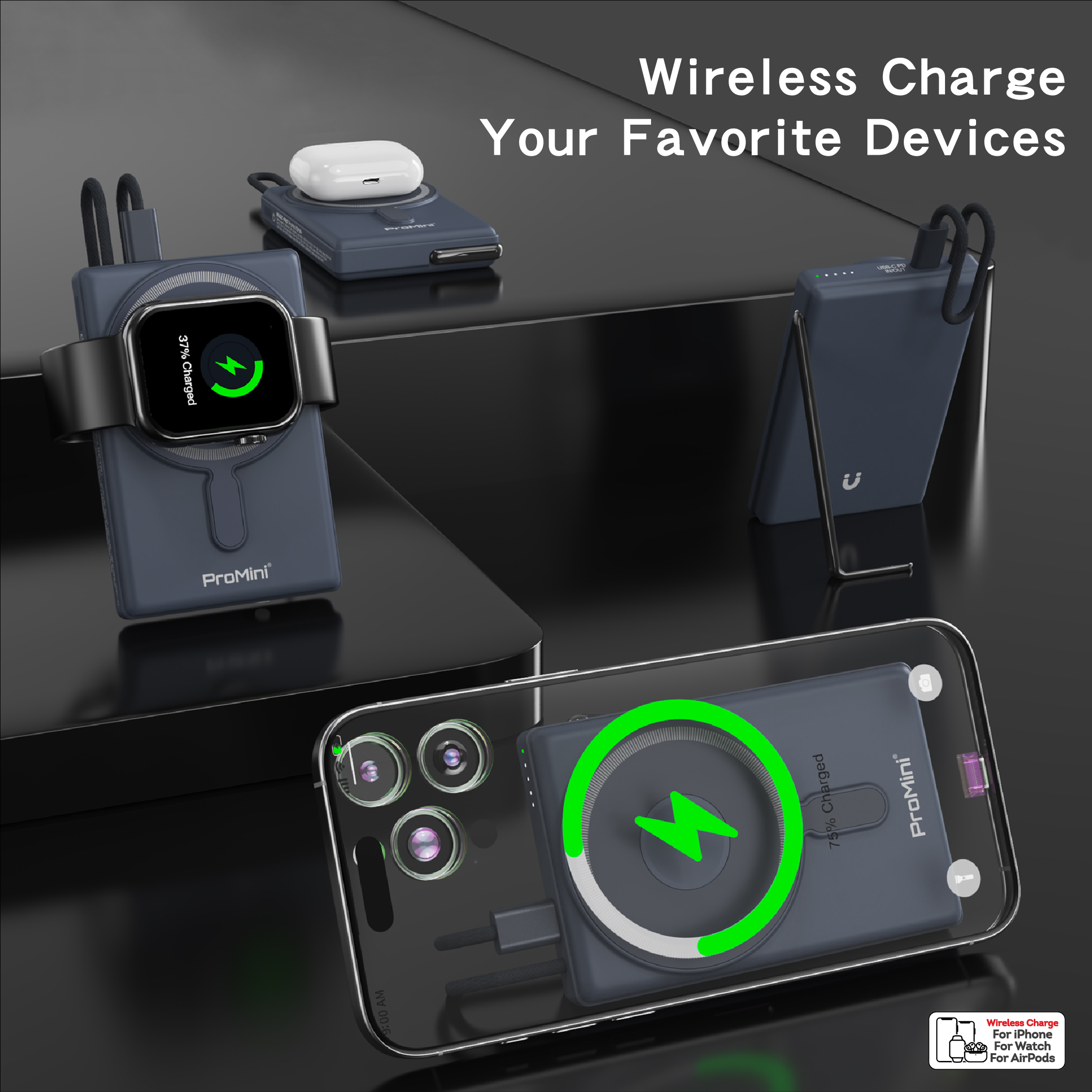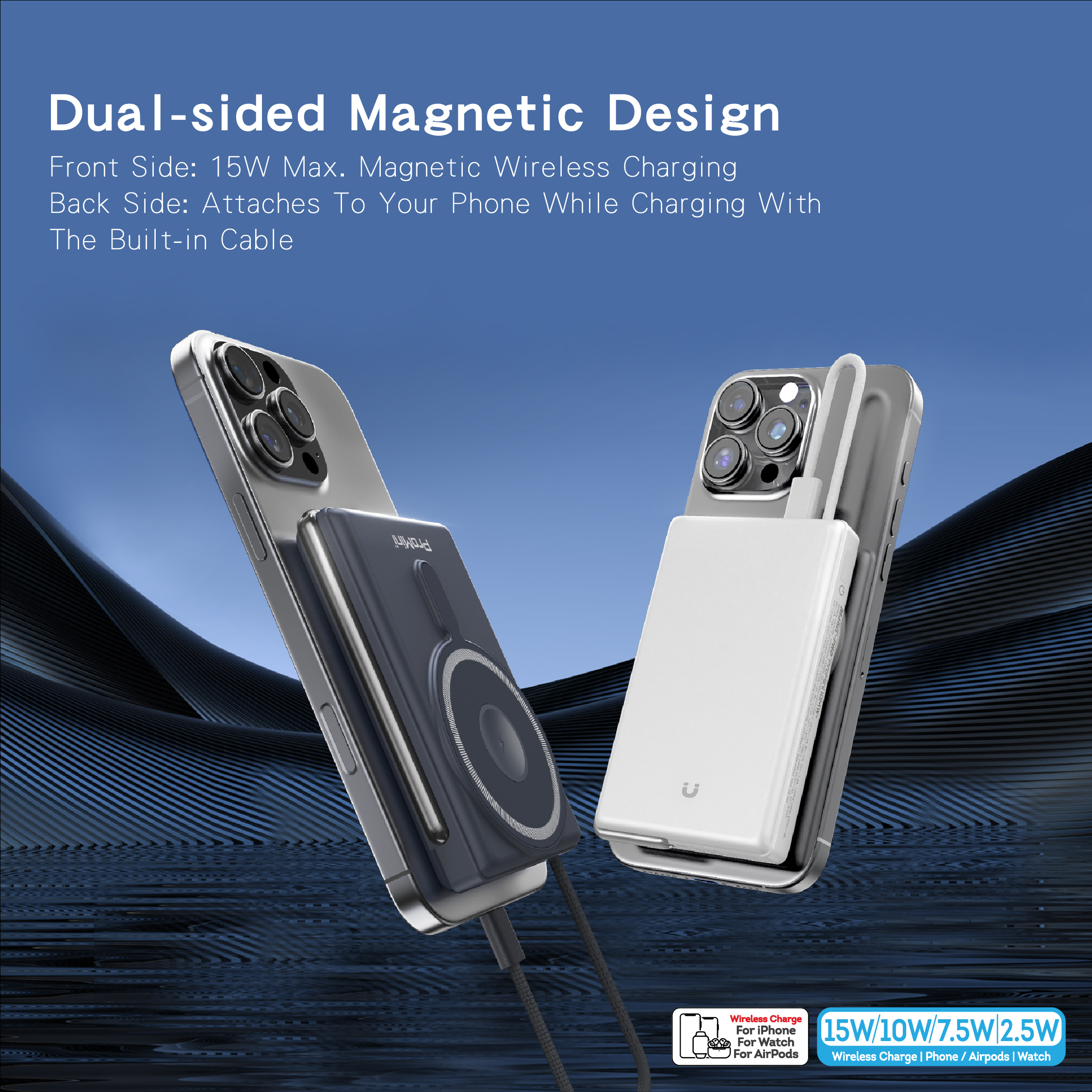 Dual-sided magnetic design - attaches to your phone while charging with the built-in cable.