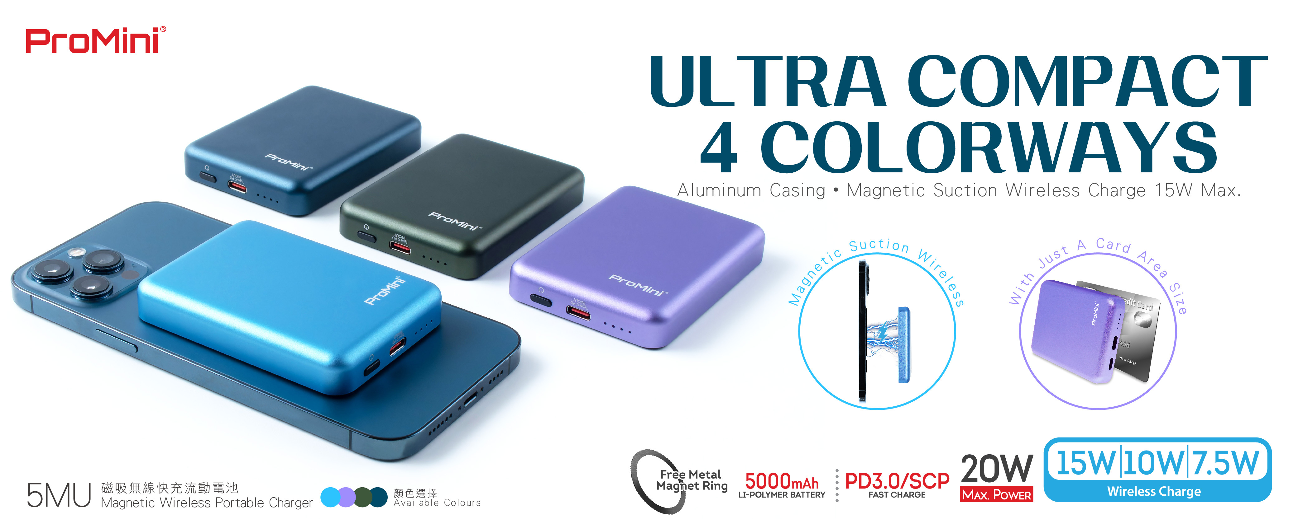 Support most Android smartphones that are compatible With Qi wireless charging standard. (Recommended using magnetic phone cases for best charging expereice) Package contains - ProMini 5MU - Metal Magnet Ring - Type-C to Type-C fast charge & sync cable (approx. 30cm) - User’s Manual