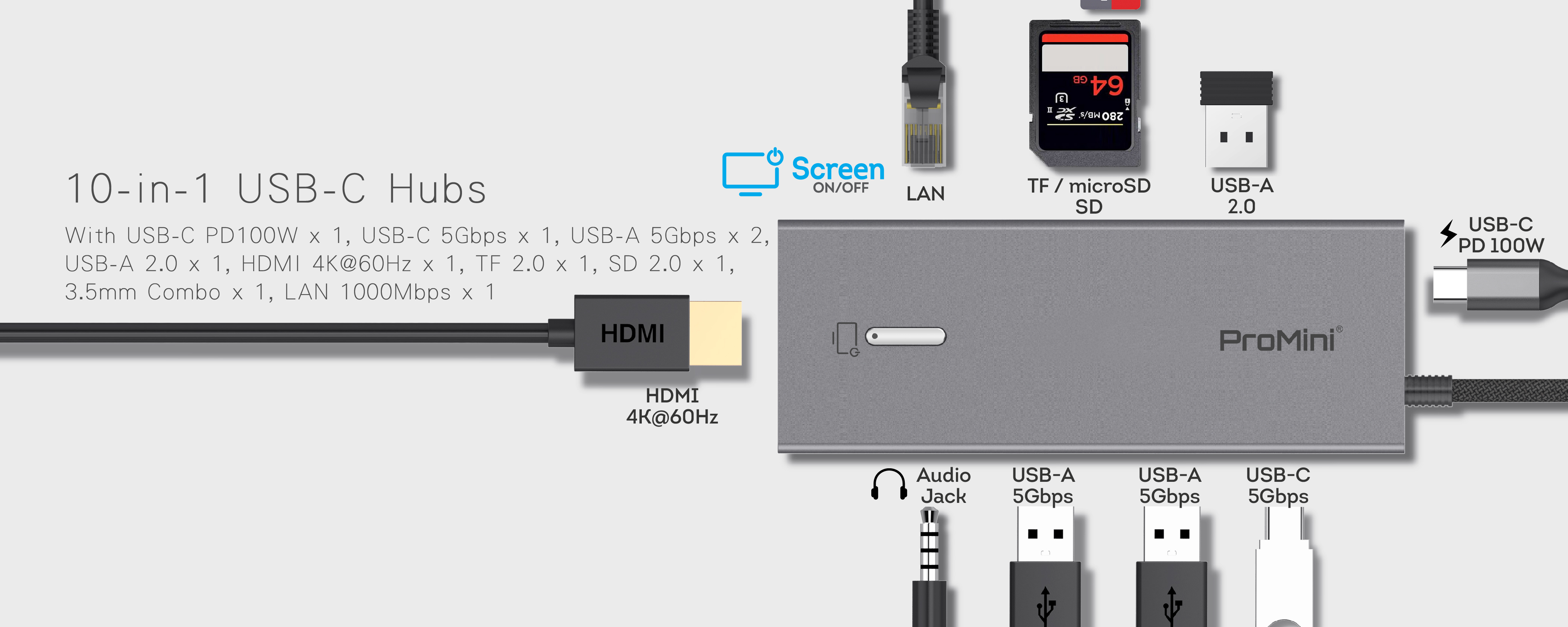 -One-Click screen On/Off type-C hubs series| Allows for quick and easy screen shutdown for privacy protection.