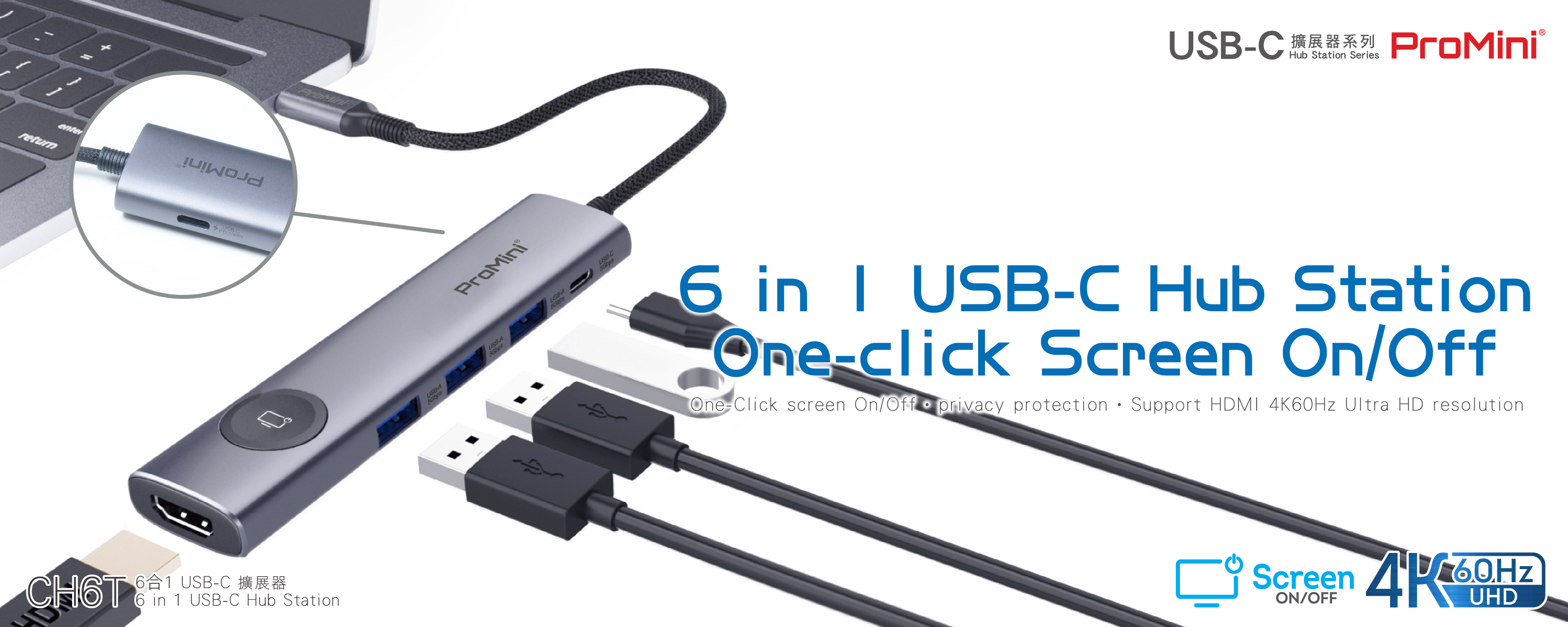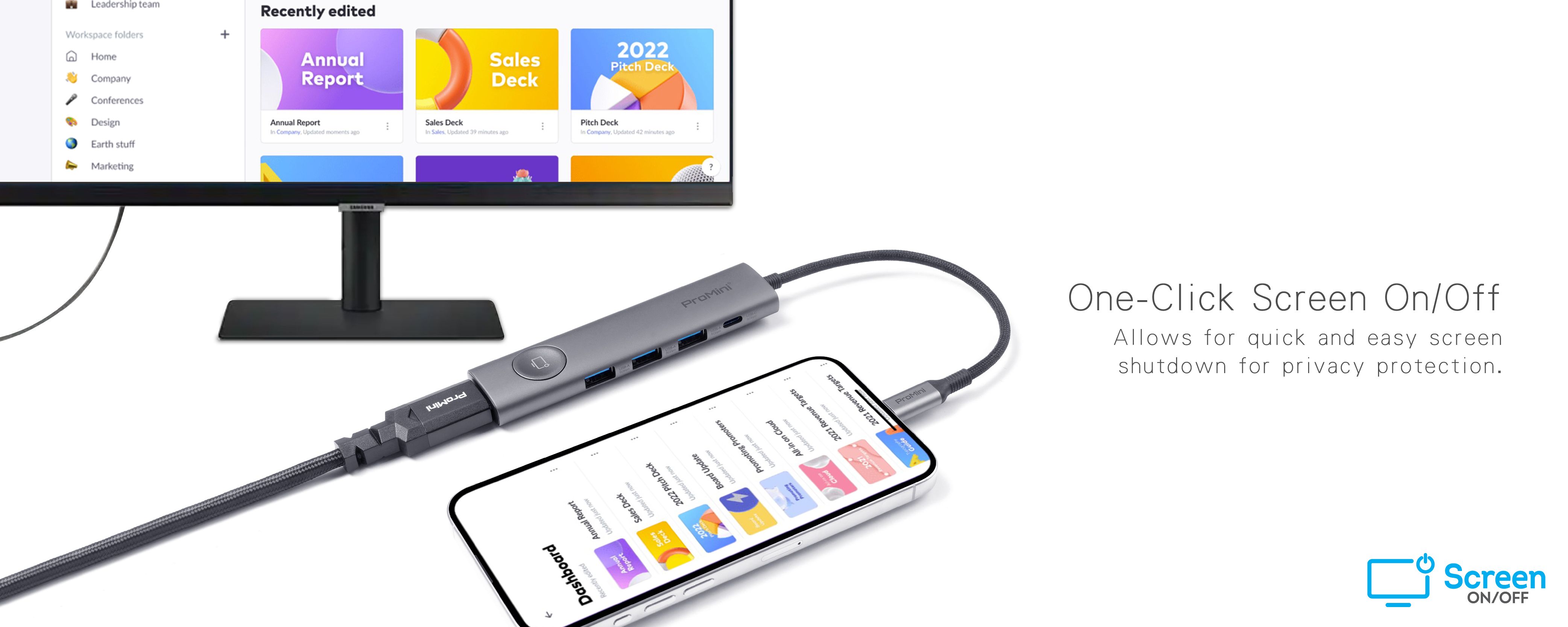 -One-Click screen On/Off Type-C hub series | Allows for quick and easy screen shutdown for privacy protection.