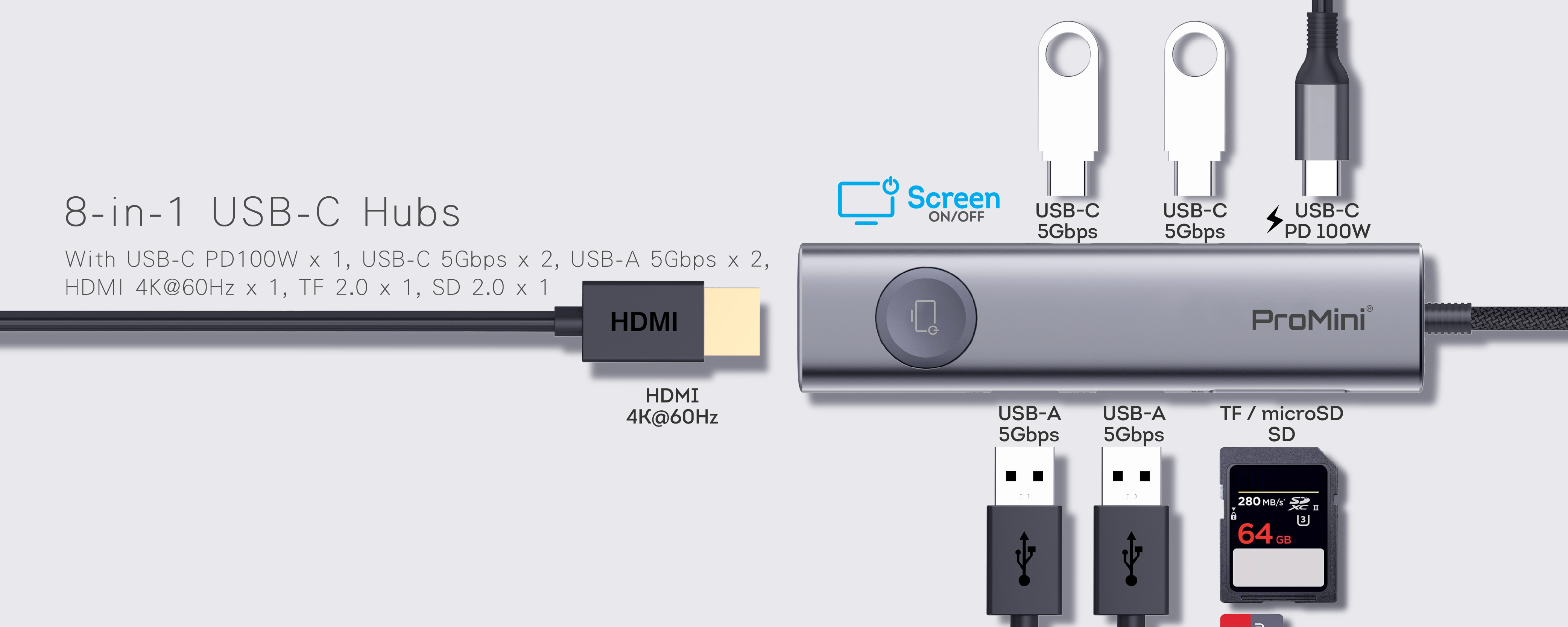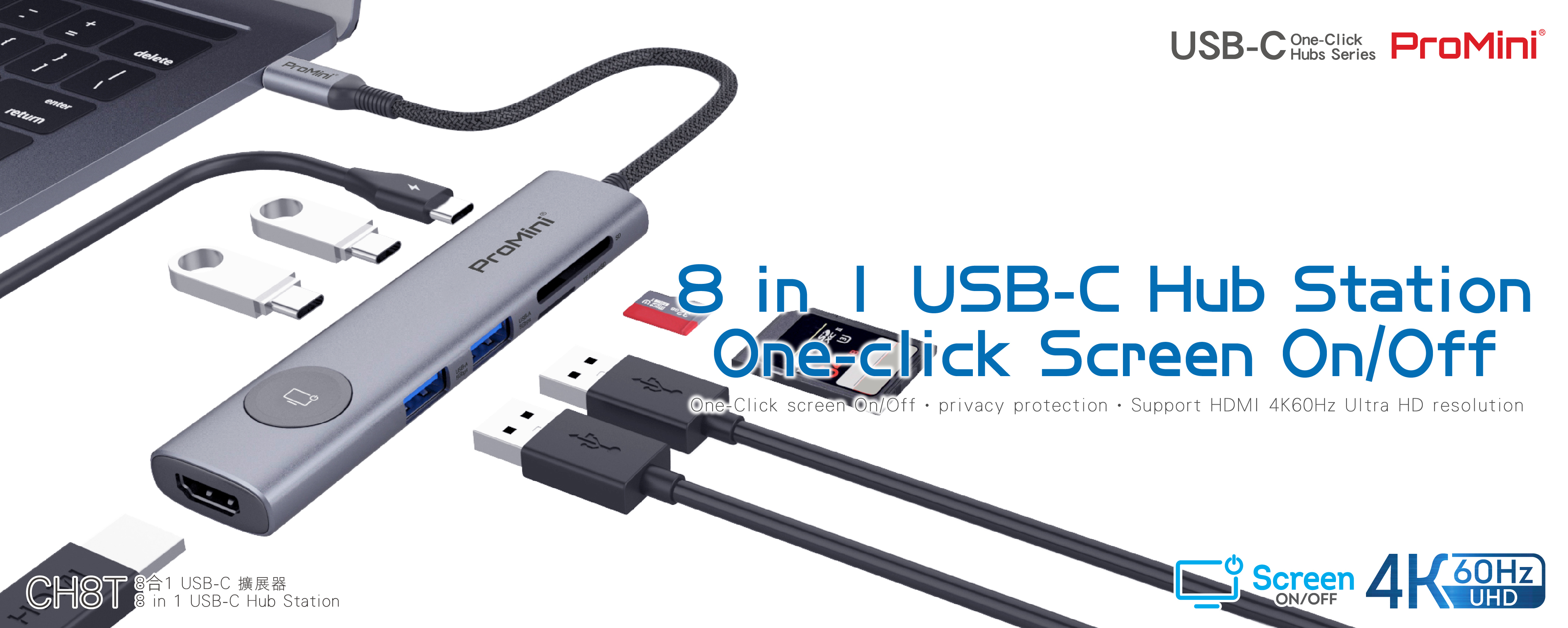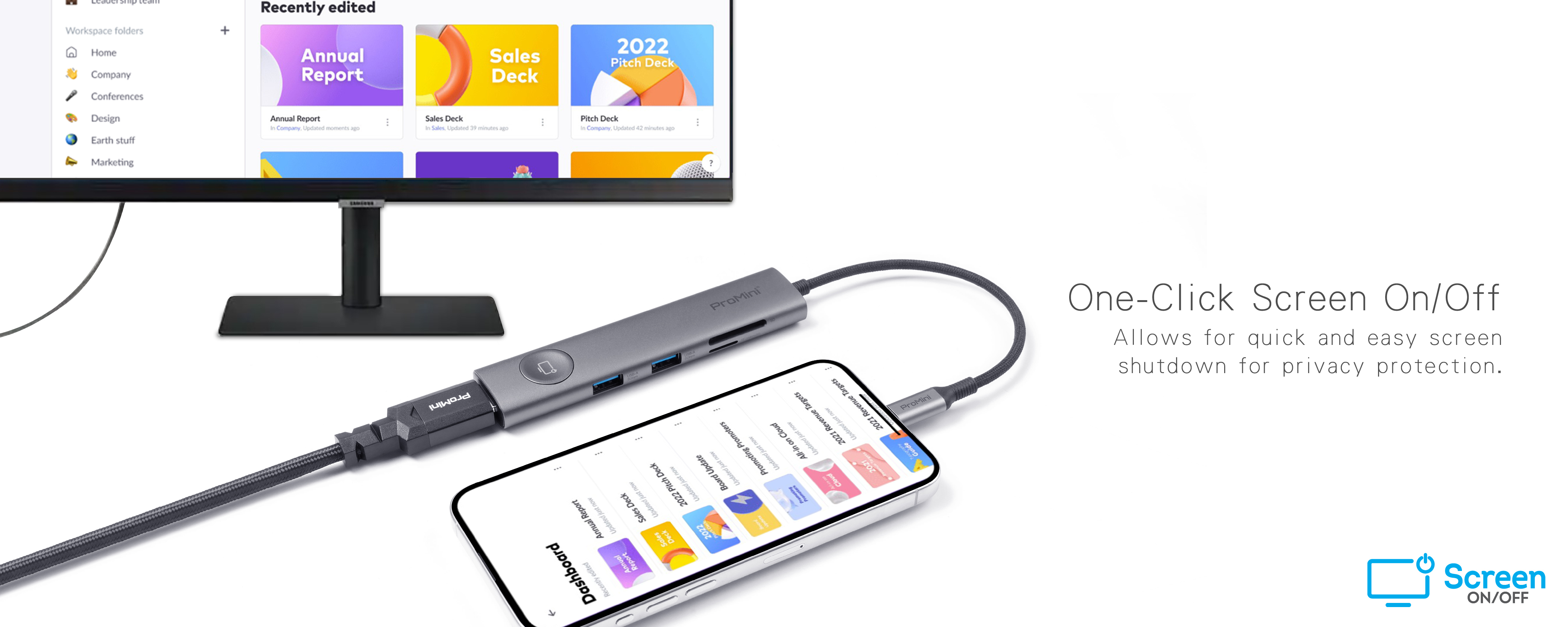 -One-Click screen On/Off type-C hub series | Allows for quick and easy screen shutdown for privacy protection.