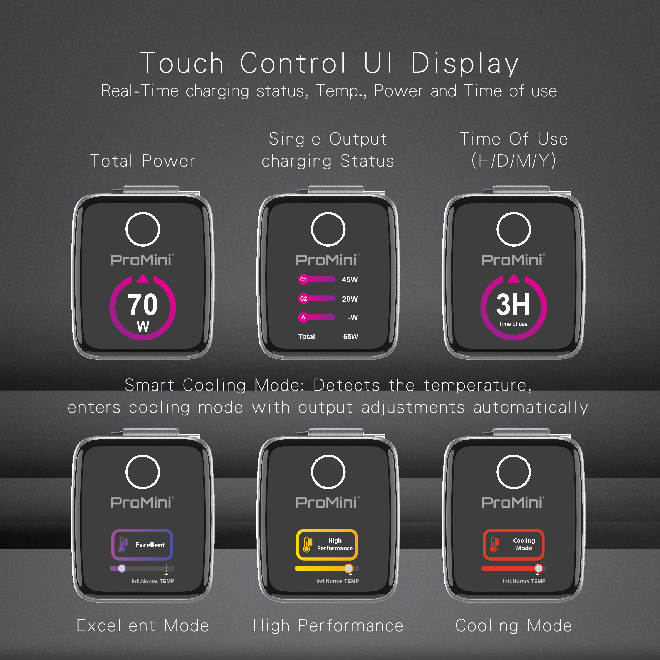 - Touch control UI display - Charging status, Temp., Power & Time of use.