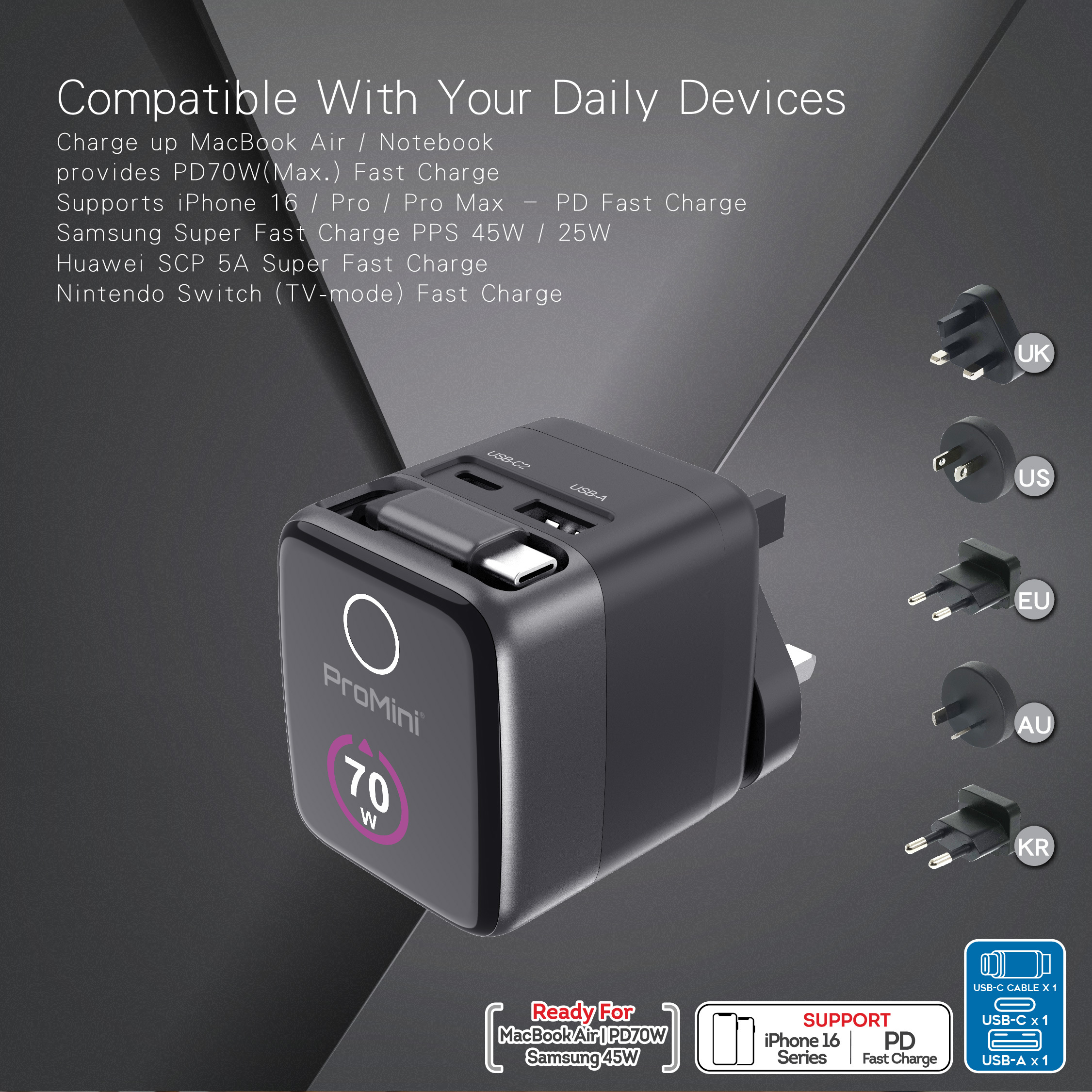 - Supports MacBook Air/Notebook PD70W(Max.) fast charge
