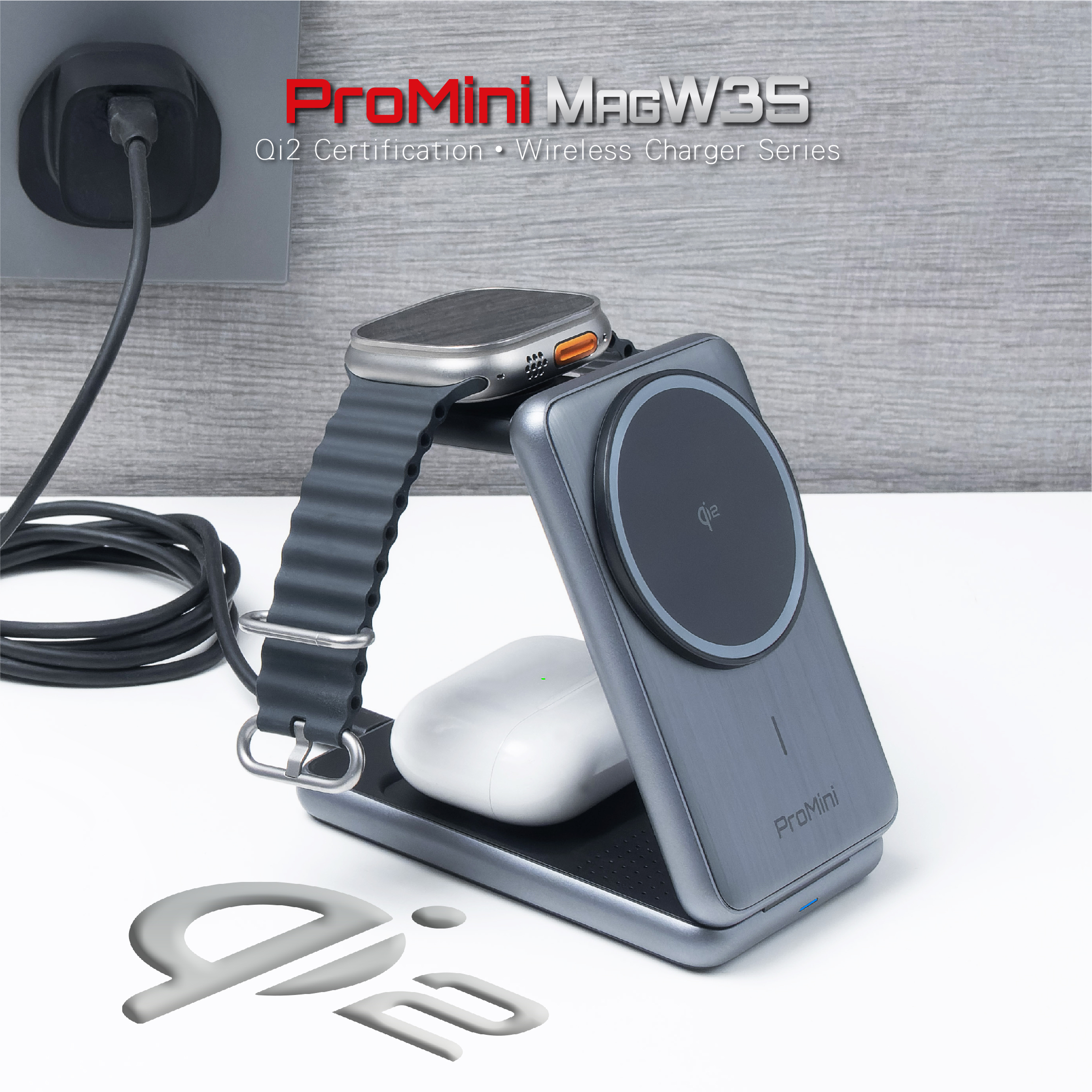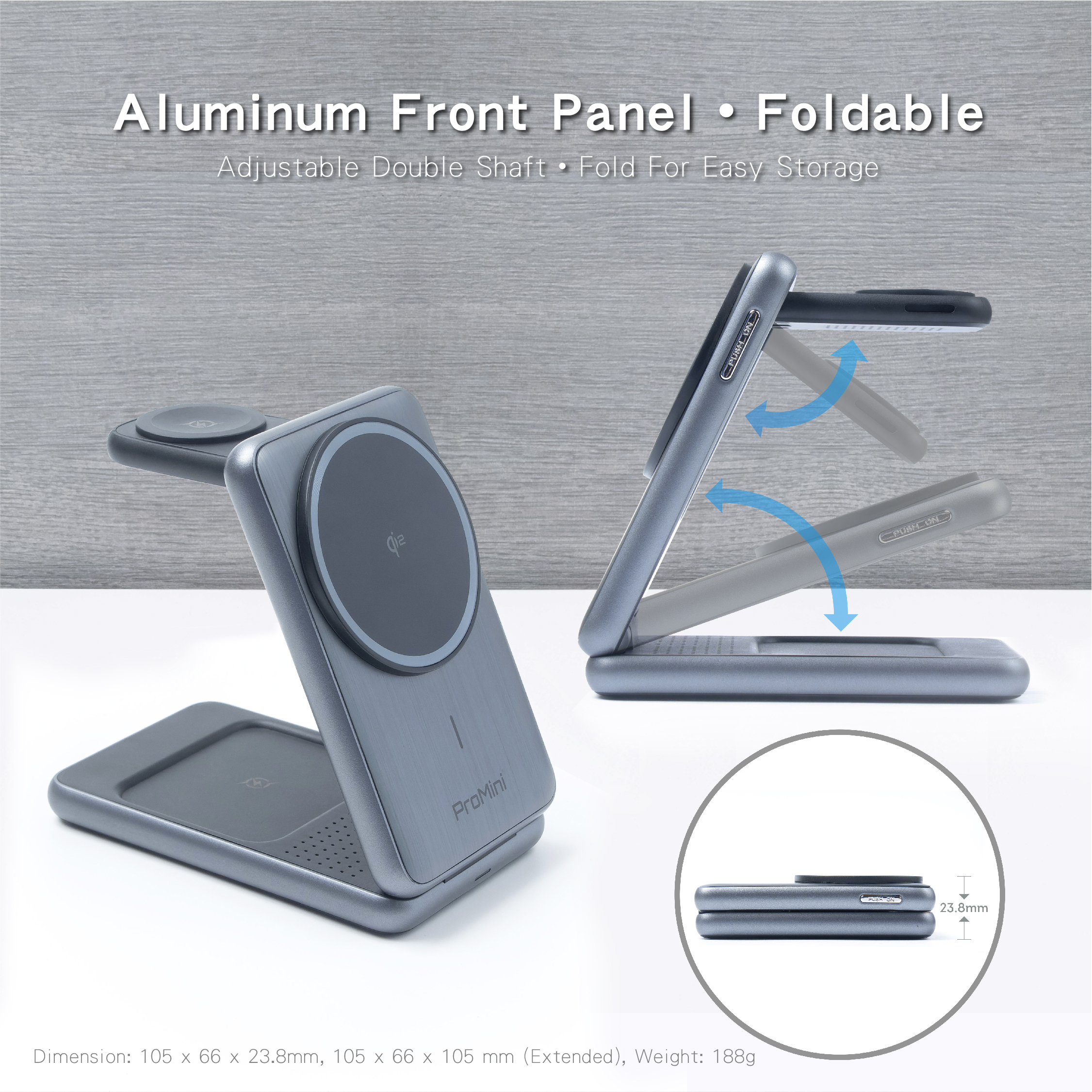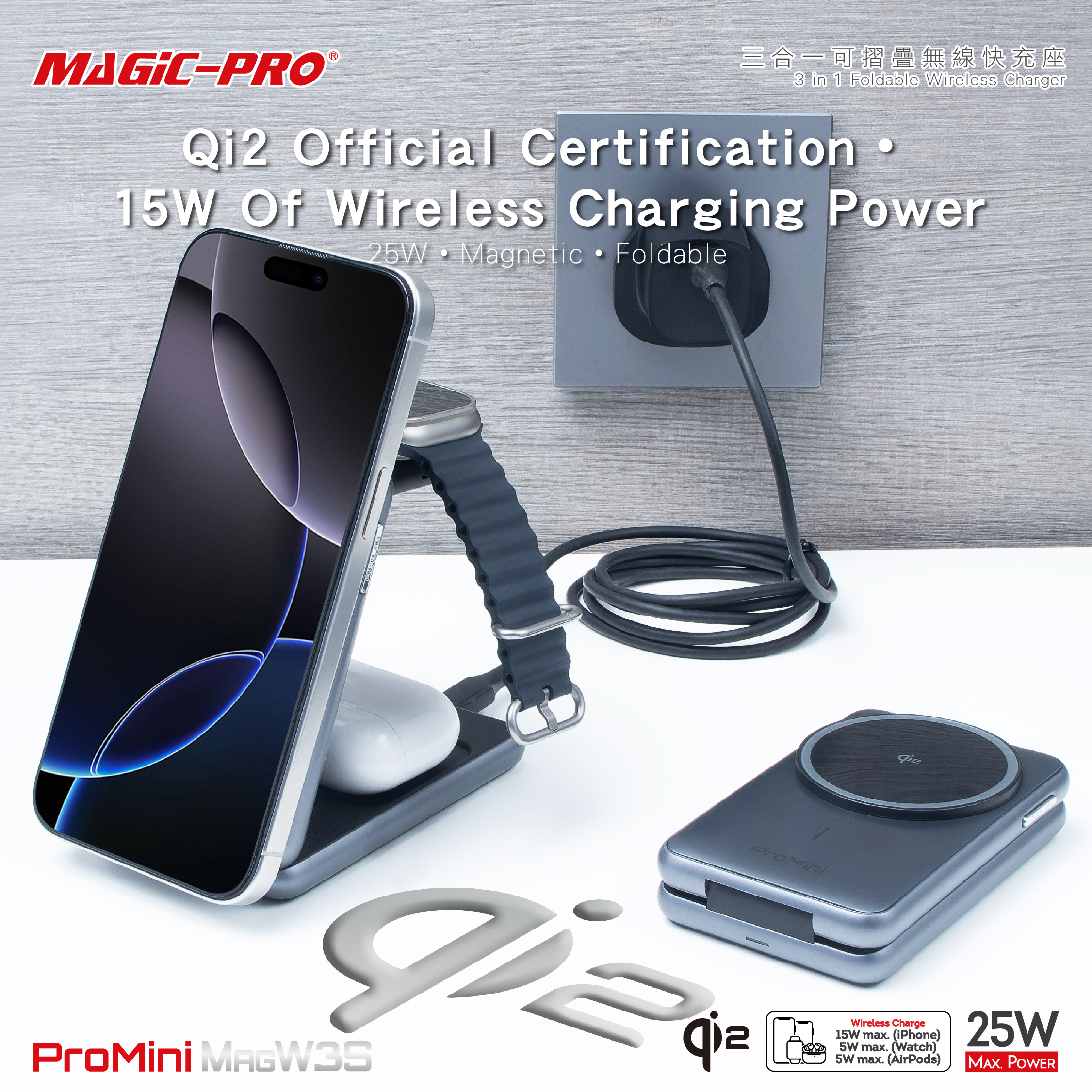 - 25W Qi2-certified Magnetic 3 in 1 Foldable Wireless Charger with power adaptor.