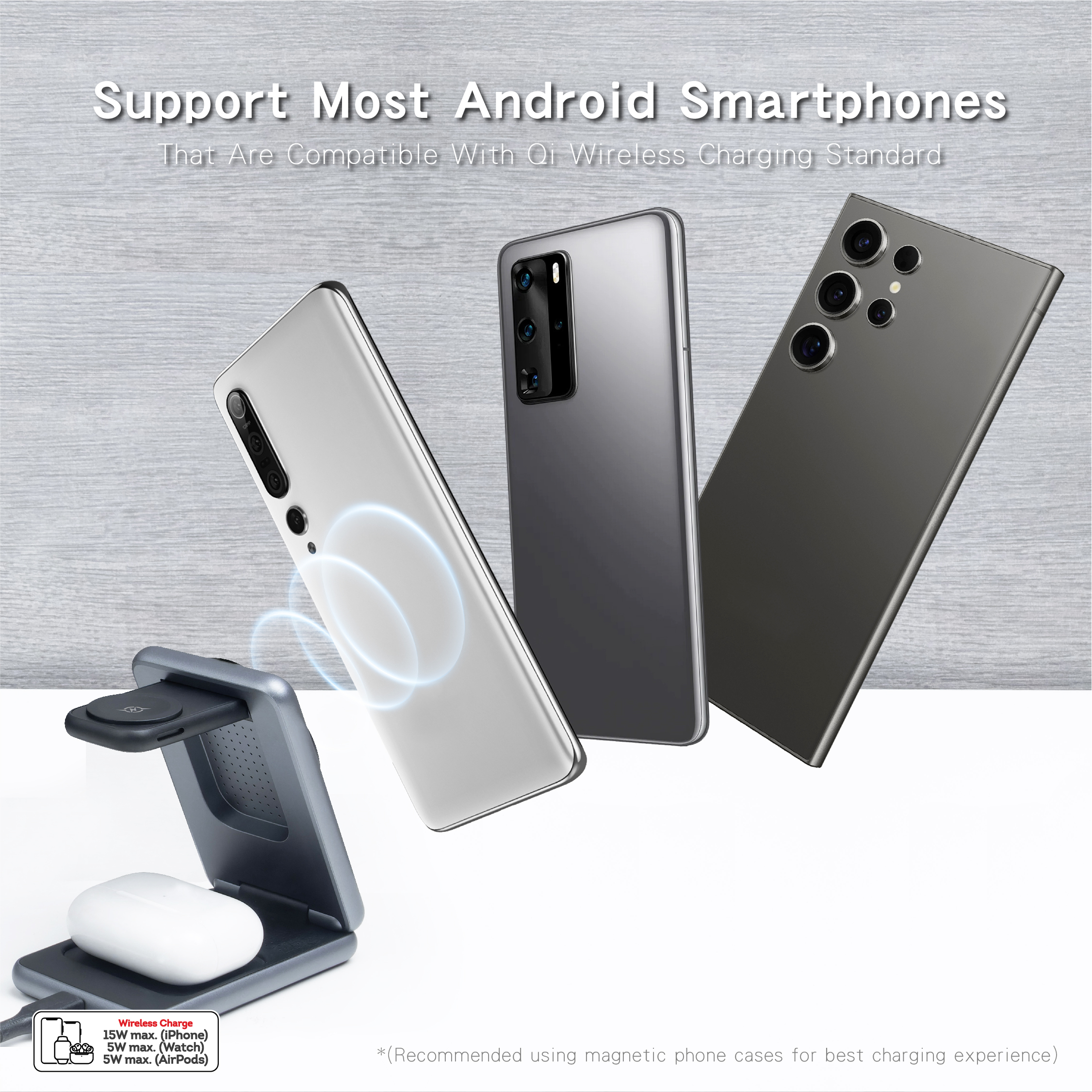 - Support most Android smartphones that are compatible with Qi wireless charging standard. (Recommended using magnetic phone cases for best charging experience)