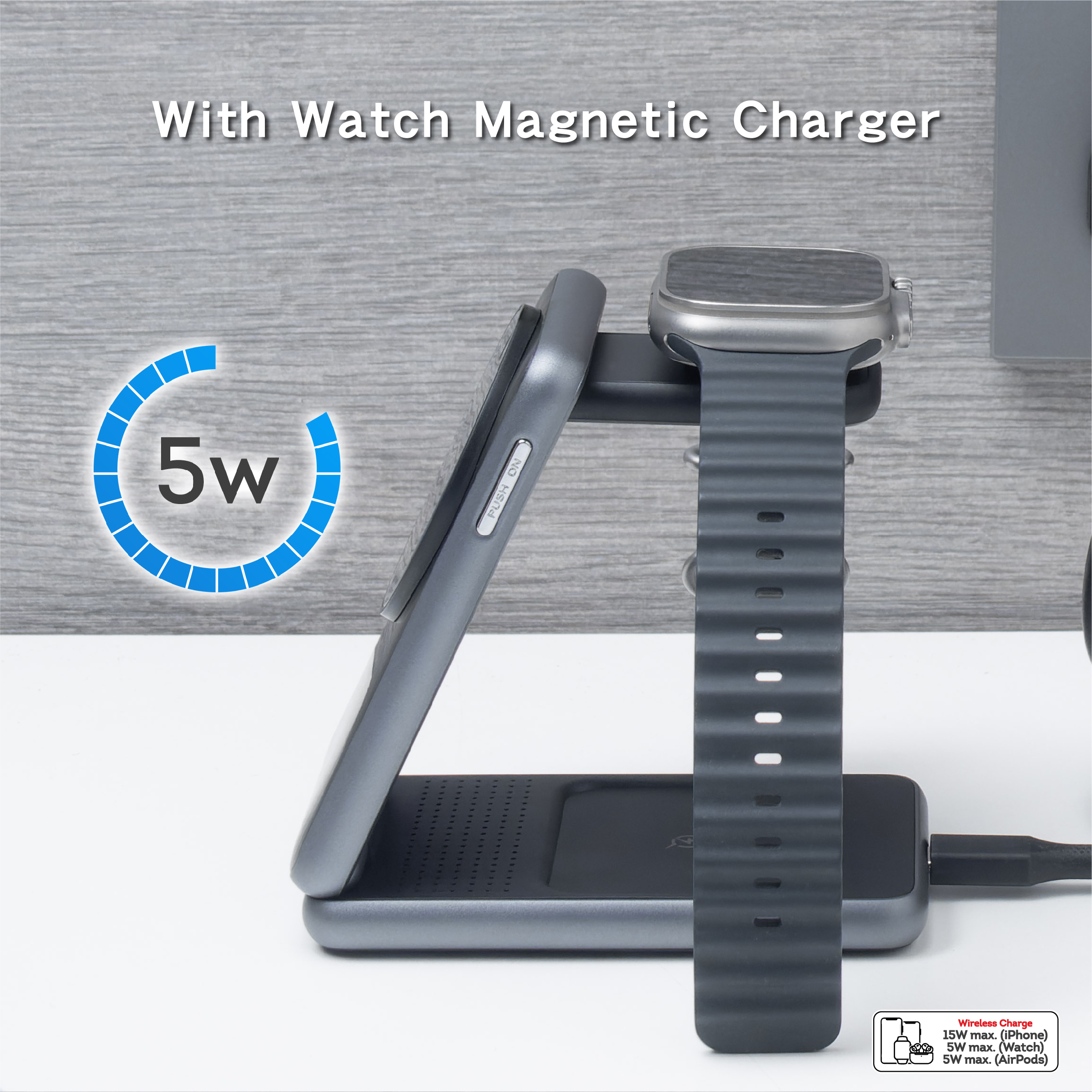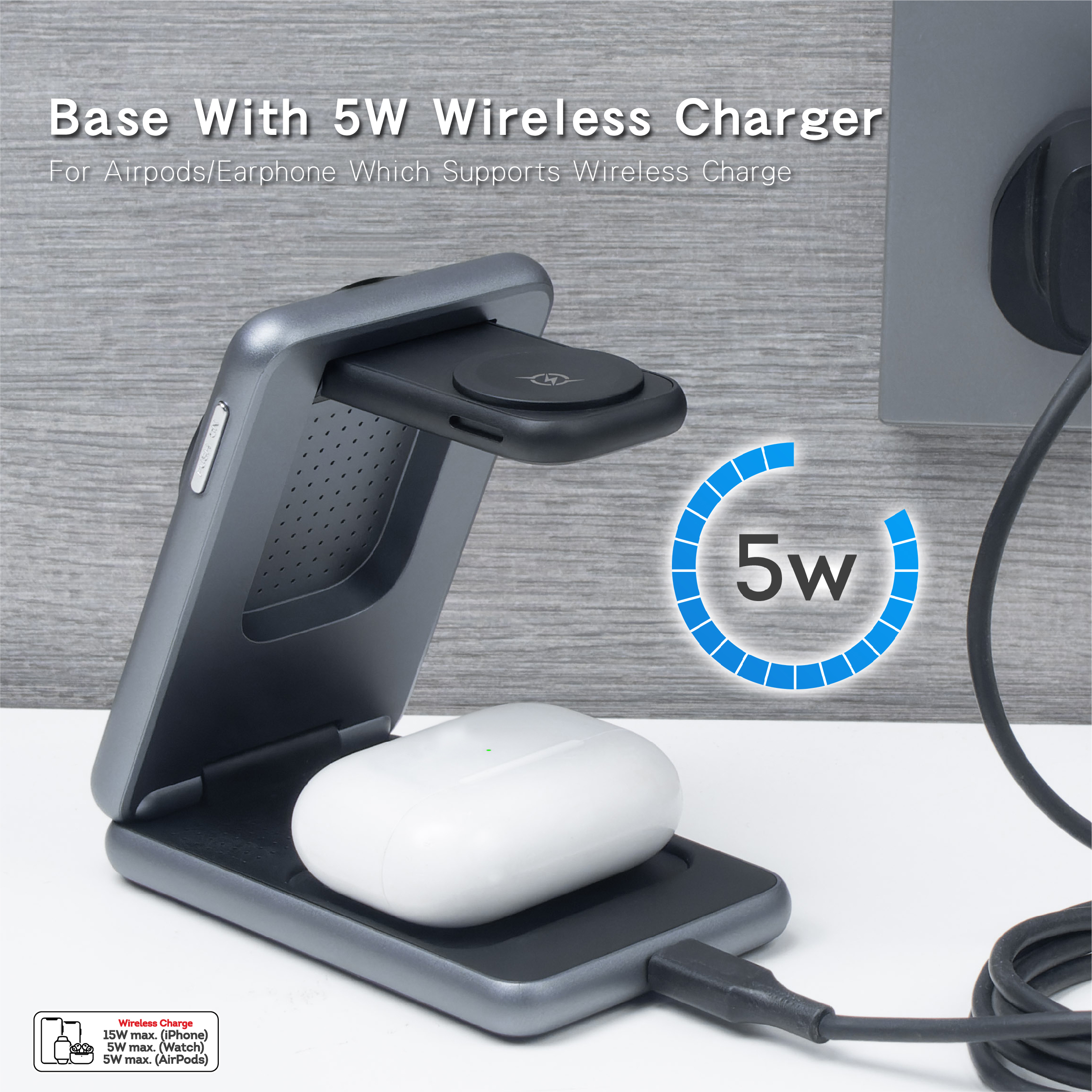- Provide optimum fast wireless charging for iPhone(15W Max.), Watch(5W Max.), AirPods (5W max.).