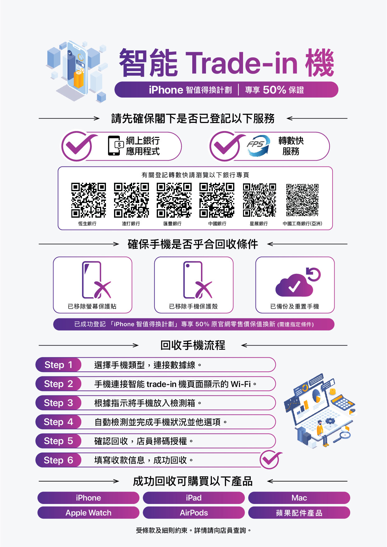 2. 經銷商 "iPhone 智值得換計劃" 僅在經銷商指定門店推行,顧客須在經銷商指定門店購買產品並註冊 "iPhone 智值得換計劃",並在經銷商所有指定推行 "iPhone 智值得換計劃" 的門店行使換新權。