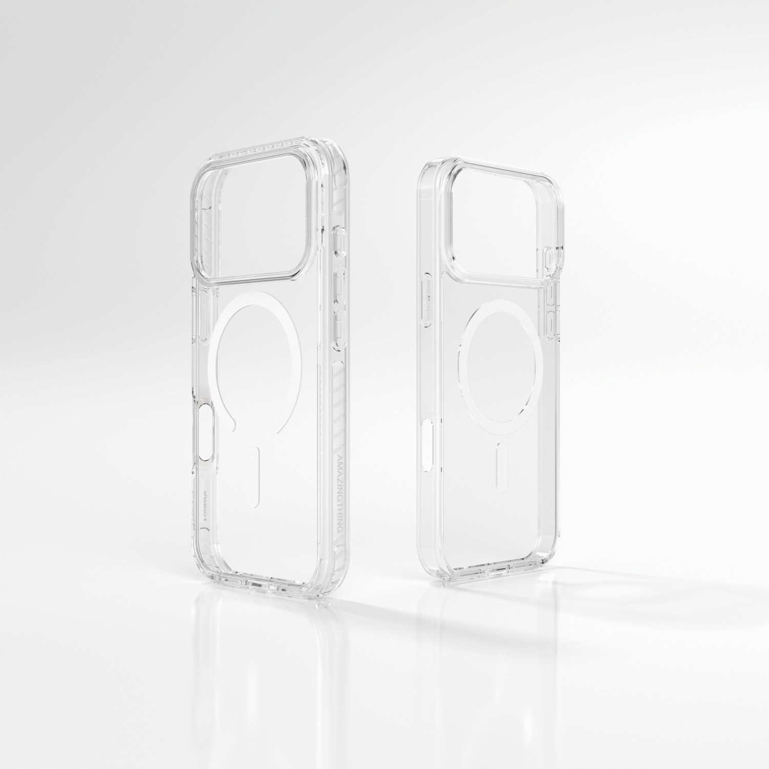 Titan Pro Grip Ring Set 專為牢固握持與可靠防護設計,配備可拆卸磁性圈增強控制感。加強角落與 X-CUSHION PRO™ 7 氣墊能抵禦12英尺跌落,防黃TPU材質保持長效透明。升級 MagSafe 對齊提升磁力穩固,支援多角度調整觀看。專業又貼心!