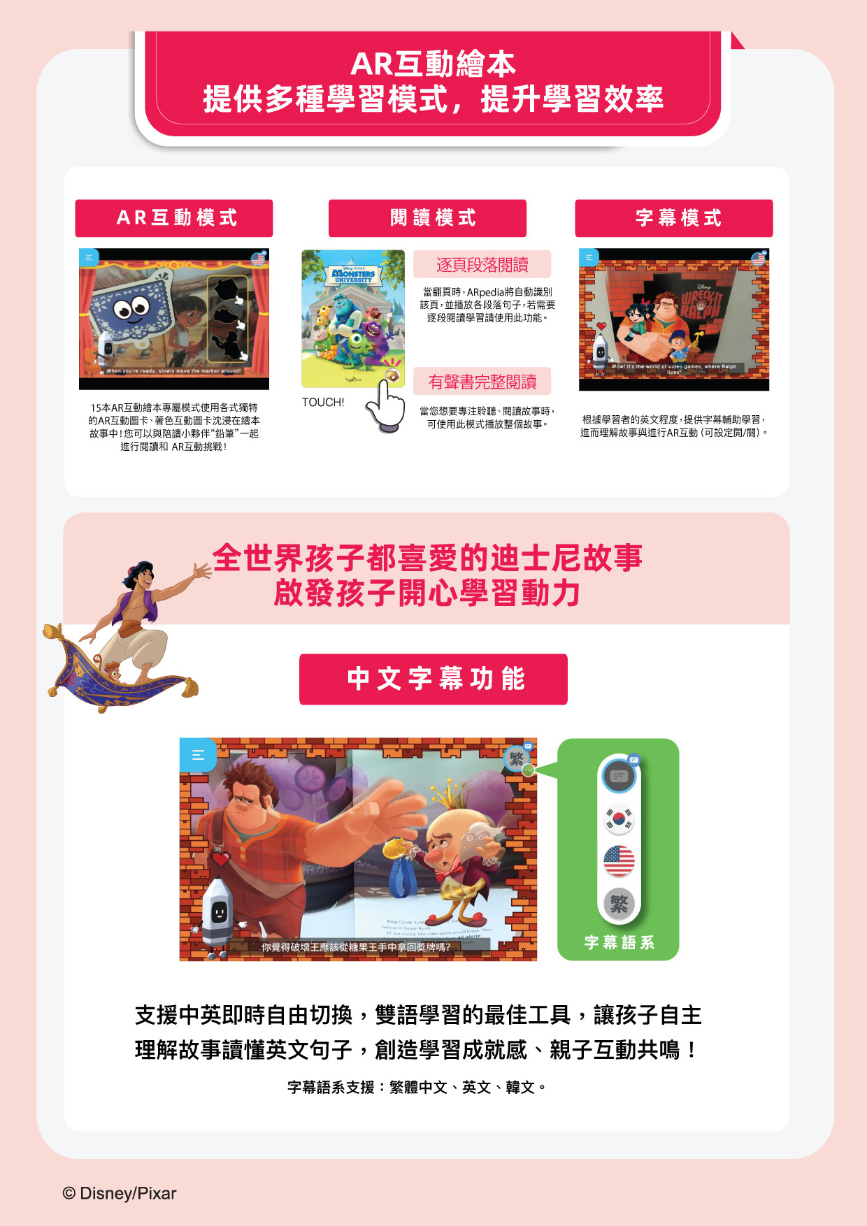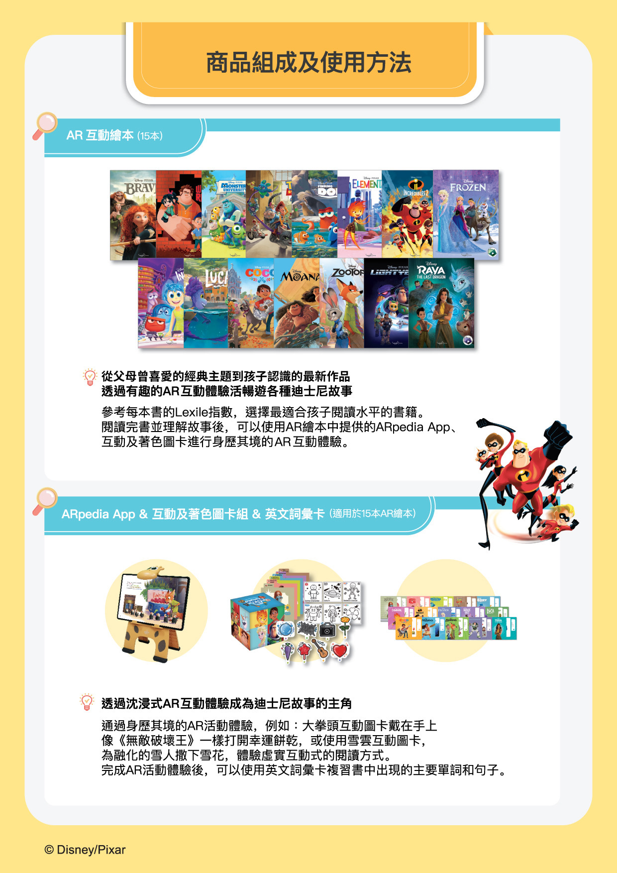 Disney AR互動繪本15本、練習本2本