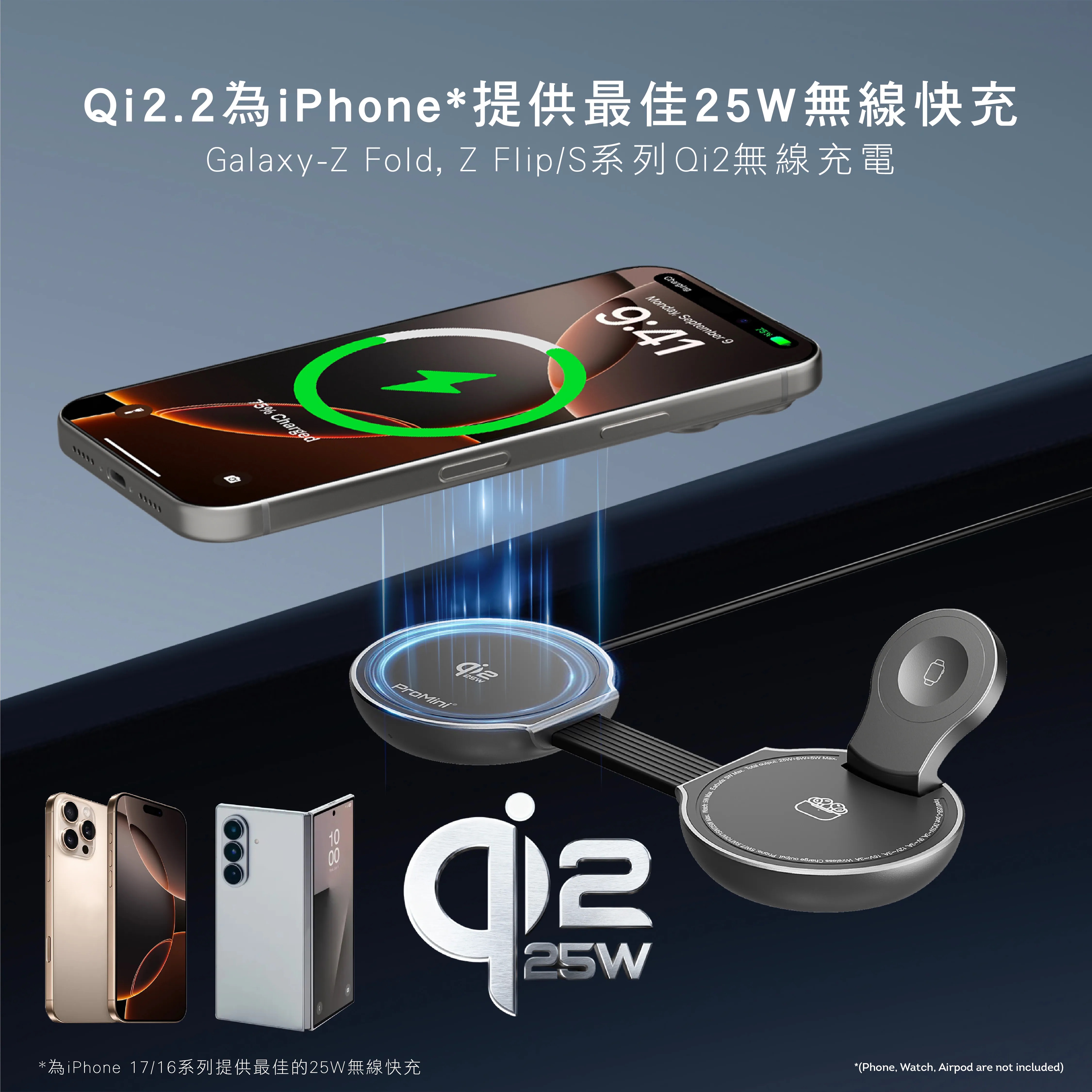 - Qi2.2 - 為iPhone 17/16系列提供25W無線快充